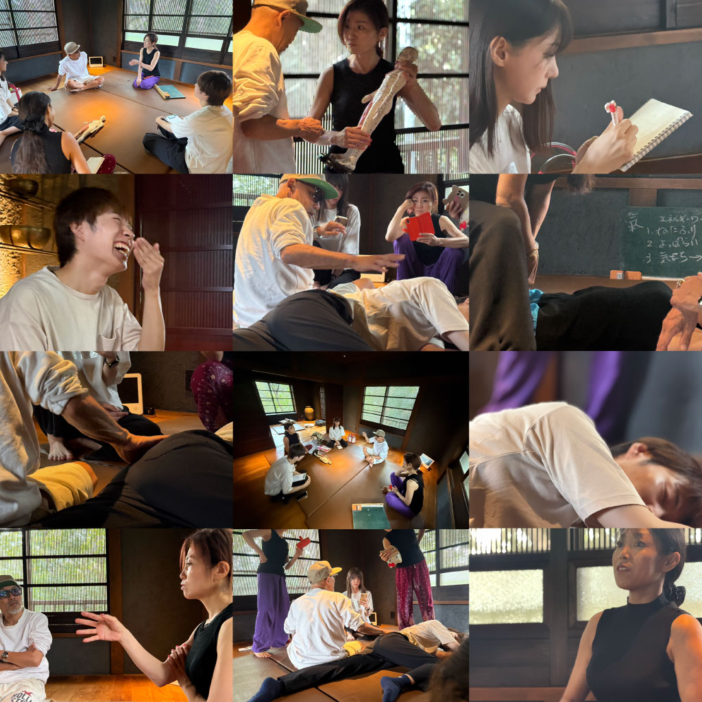 今回の勉強会に参加する前はどんな人が集まるんだろ、何をするのか、全てが自由にというところも決まってないところからのスタートだったんですが、集まる方の技術も、普段の施術もバラバラの中、みなさん探究心と、パワーが溢れた人が集まると確信していたので楽しみでしかなかったです。一日目は何をしよーかから、それぞれ日常の施術での疑問、質問を様々な角度から長老交え話し合いながら理解を深めつつ、クライアントに対して1番何が大切か、効果を最大限に発揮するにはどうしたらいいのか、というのをベースに、氣の大切さなどを