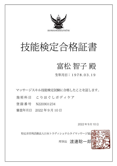 審査を通過したスキルに対して事故補償サポートをつけることができます。業界団体TTMAでは、貴殿のマッサージスキルを「T級マッサージスキル証明」として登録することで、事故補償サポートが付与されます。登録手続きに費用は発生しませんが、TTMAのセラピスト会費として月額1800円がかかります。当月から発生しますので、当月以降年度末(8月)までの月会費(1800円/月)として数か月分をまとめてお支払いいただきます。手続きの関係上、事故補償に関するサポートは翌月1日からの適応となります。次に、貴殿のデジタル顔写真を提出してください。お持ちでない場合、写真撮影を行わせていただきます。免許証等のIDカードをコピーさせていただき、登録が完了します。