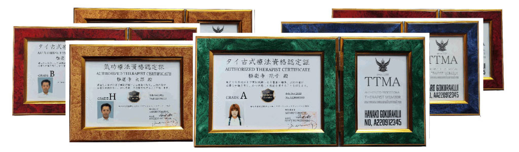 AA級資格は、伝統医学の理論を理解して、治療家としてオリジナルの施術法までが提供できる超上級者のエキスパート資格です。事故補償の対象範囲は伝統医学のあらゆる施術法が事故補償の対象となります。力強いパワープレスやアクロバティックなストレッチングまでがサポートの対象となります。施術スタイル自体を一つの瞬間芸術として見る場合、見よう見まねの形だけのスタイルではなく、理にかなった施術の意味を踏まえたアーティストとしての意味合いさえ待つことになります。このAA級資格は日本におけるタイ伝統医学の草分け的なTTMAの全てを網羅した本物のスキルとアーユルヴェーダや中医学までを網羅した伝統医学に精通したセラピストの証となります。さらに、AA級資格認定を受けると、AAA級指導員資格取得に向けた無料レッスンが受けられるというサポートもありますので、指導者を目指す方にとっても有効な資格となっています。