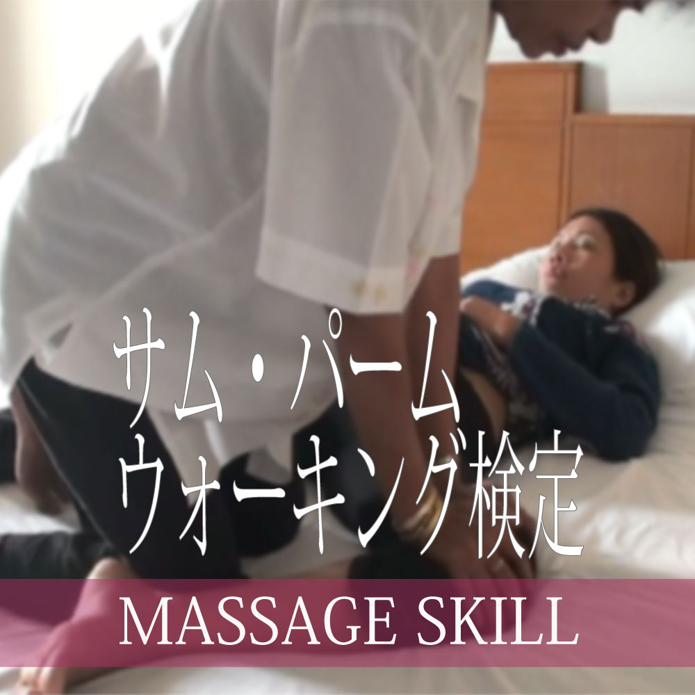 「サムウォーク・パームウォーク」は、タイ古式マッサージ・チェンマイスタイルの特徴とも言えるテクニックです。左右の母指を交互に浸かって歩くように圧迫していきます。チェンマイは、かつて「ランナー王国」の中心として栄えたタイ北部の古都ですが、このテクニックは、バンコクスタイルには含まれないものです。現在では、多くのセラピストが、バンコクとチェンマイの両方のスタイルをミックスして施術を行っていますが、「サムウォーク・パームウォーク」はいろいろな場面で使える便利な技ですので、必ずマスターしておきたいものです。「サムウォーク・パームウォーク」は、ソフトタッチから、しっかりとした圧まで、体勢や手首の返しなどを変えることで幅広い表現が可能です。検定では、主にその表現力を審査させていただきます。